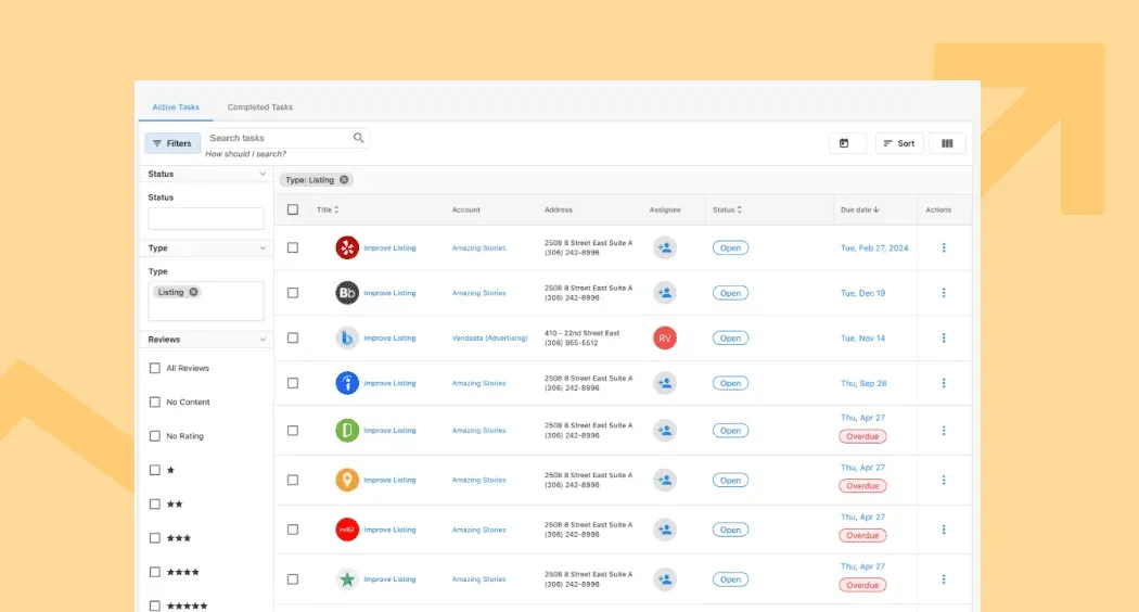 Boost visibility with Vendasta’s citation builder. Quickly submit business details to Data Axle, Neustar/Localeze, and Foursquare, expanding reach on 300+ platforms. Ensure consistent NAP data across channels, from Siri to Uber. Help clients rank higher and get discovered with ease.